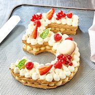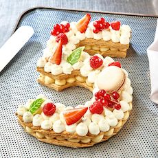Idéal pour de nombreuses occasions (anniversaire, départ en retraite, mariage), cette présentation surprendra sans aucun doute vos convives tout en leur proposant un délicieux gâteau composé d'une pâte feuilletée garnie d'une crème mousseline et d'une crème chantilly au mascarpone, décoré de fruits