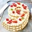 Biscuit moelleux garni de creme mascarpone et fruits rouges.