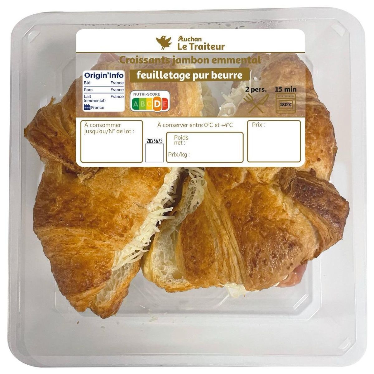 Croissant au beurre garni d'une sauce blanche à l'emmental (34,6%), de jambon cuit supérieur et d’emmental.