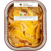 Pomme de terre 60%, LAIT demi-écrémé, CRÈME fraîche 13%, BEURRE 3%, farine de BLÉ, sel, ail, épaississant : gomme xanthane, muscade, poivre.