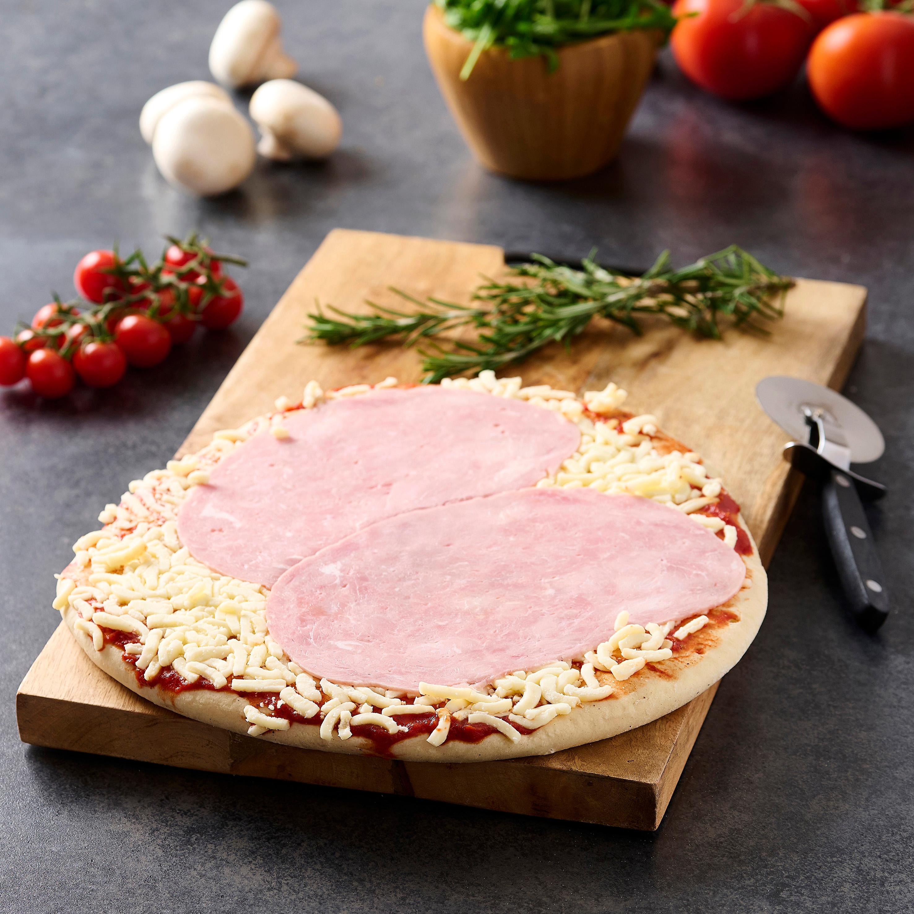 Pizza au jambon et mozzarella.