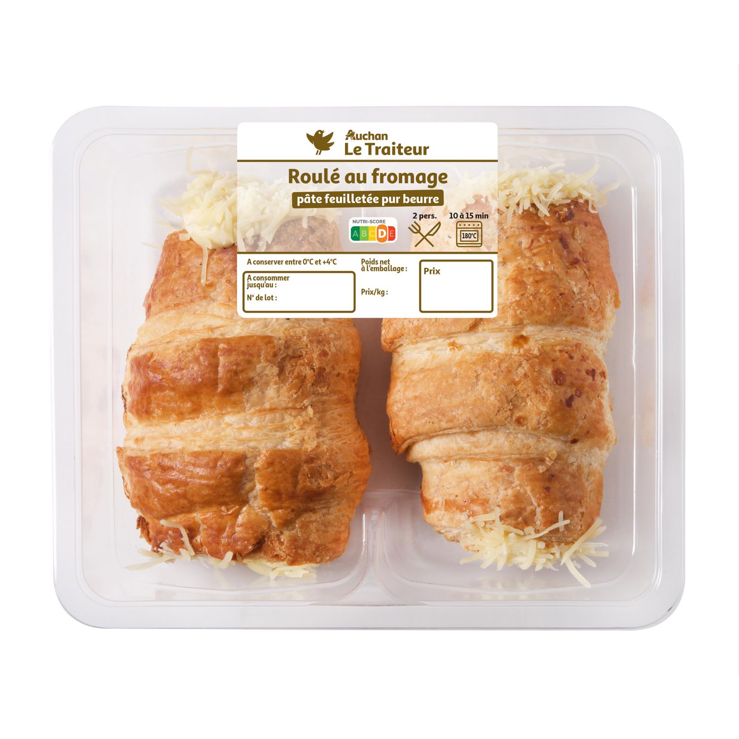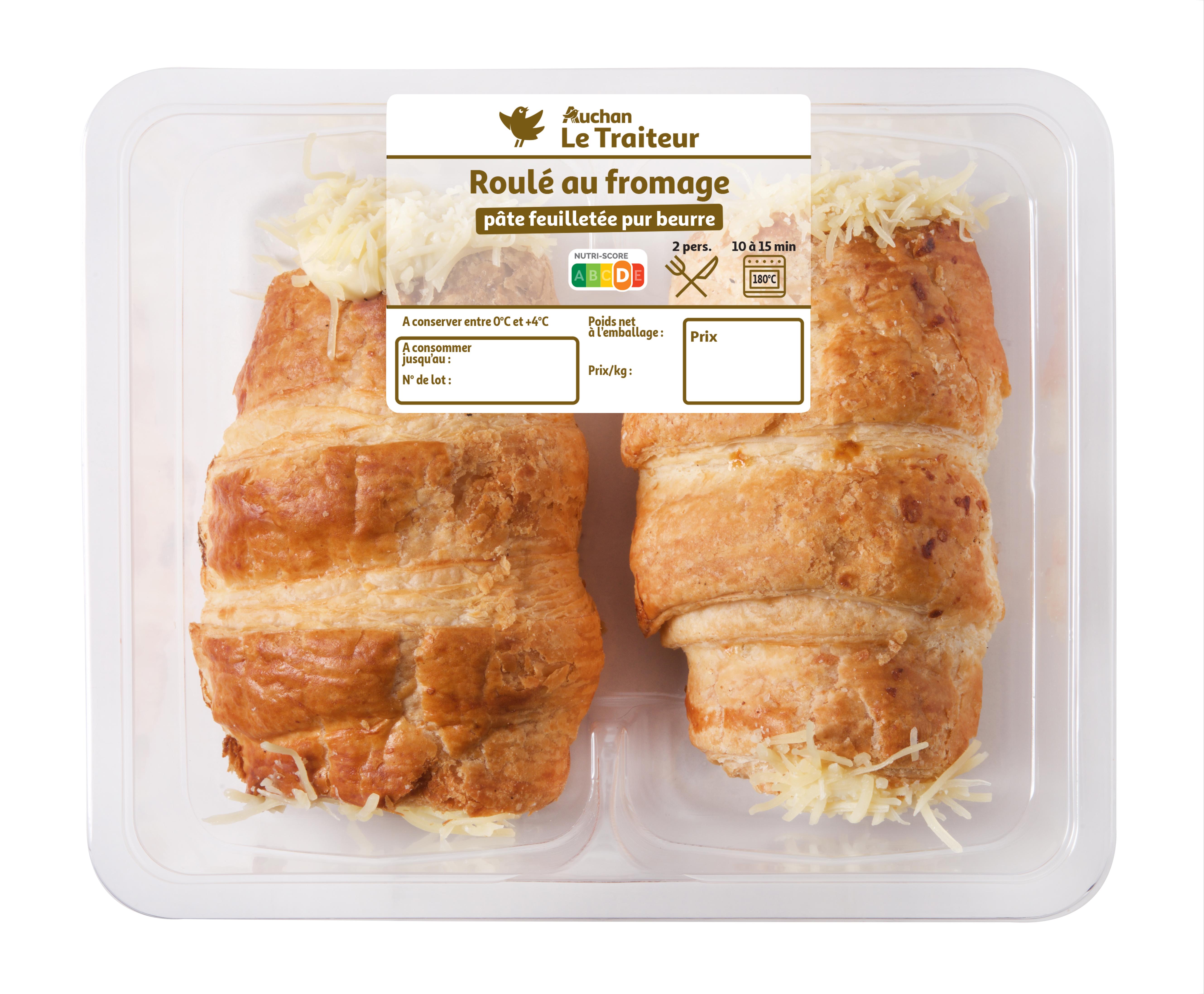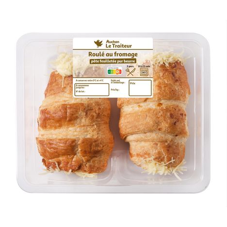 Véritable roulé tourné en pâte feuilletée pur beurre et garni d’une sauce béchamel enrichie aux fromages.