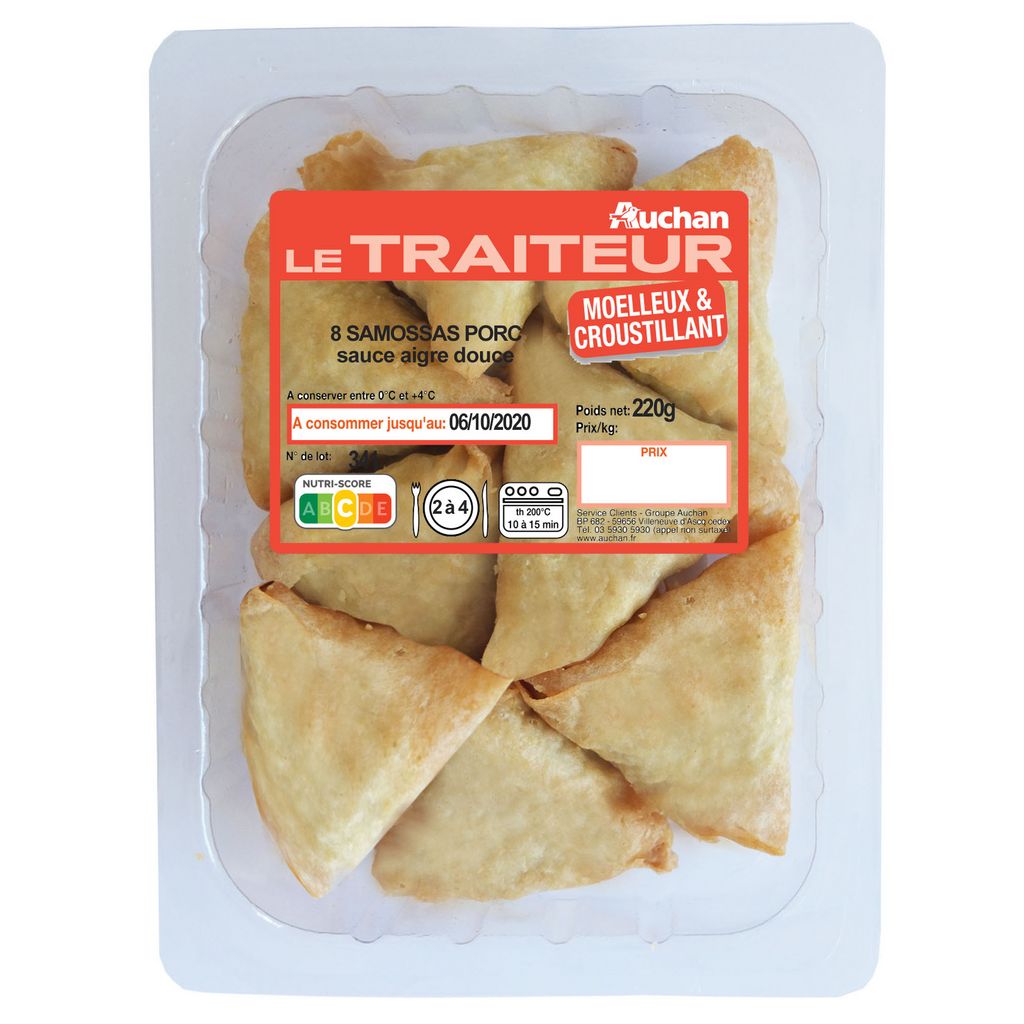 Samossas porc + sauce aigre douce Auchan le Traiteur