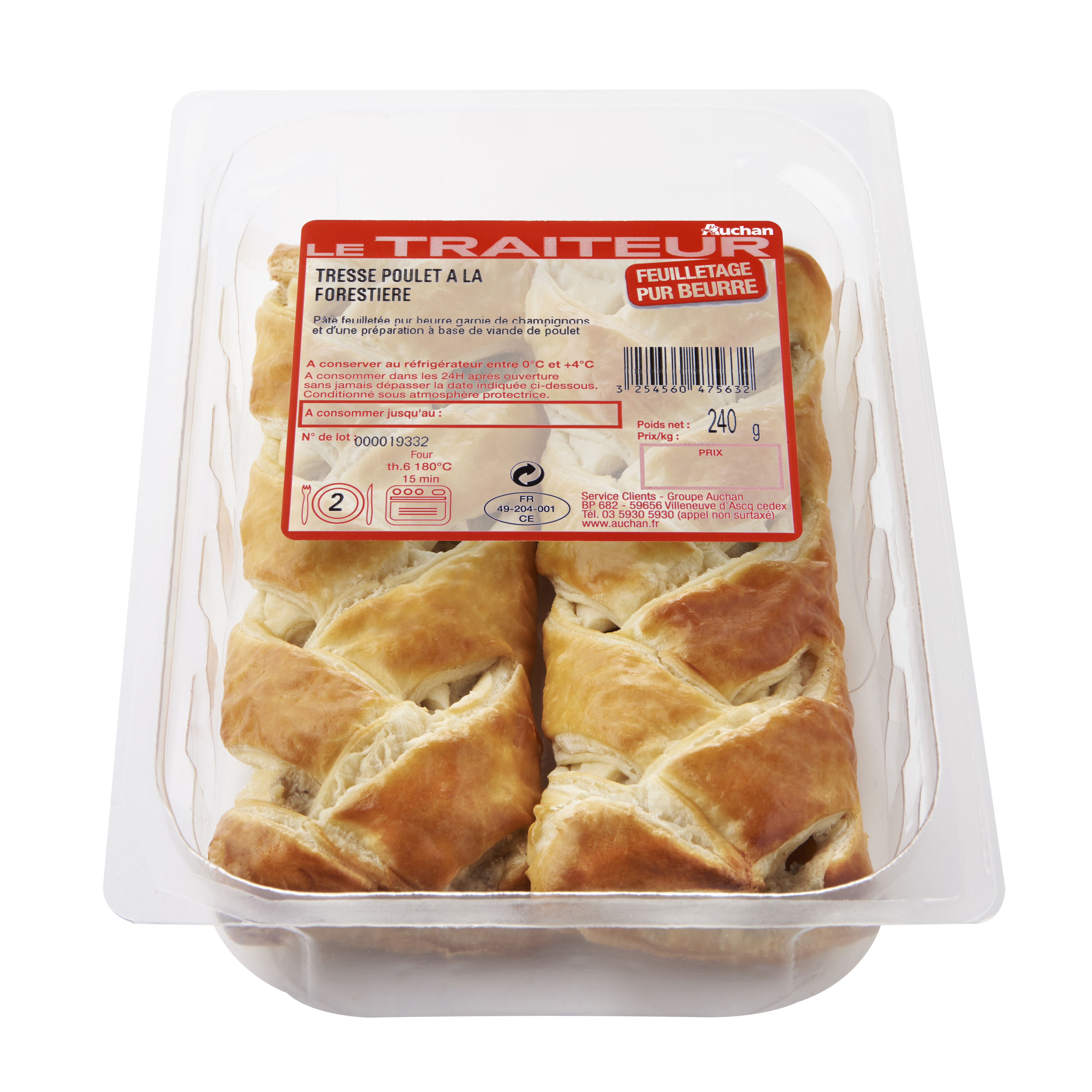 Pâte feuilletée pur beurre garnie de champignons et d'une préparation à base de viande de poulet