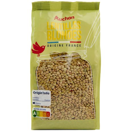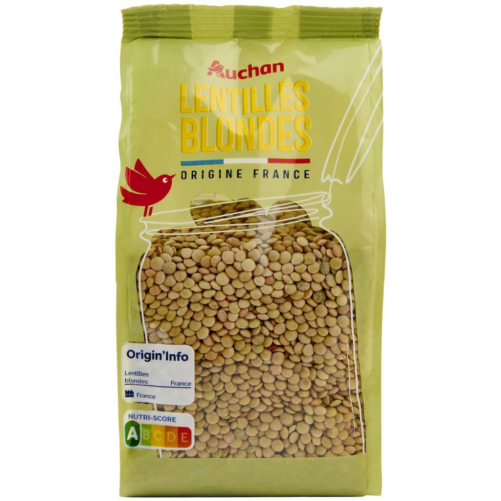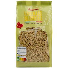 Ingrédients : Lentilles blondes.Traces éventuelles de fruits à coque, arachides, graines de sésame et céréales contenant du gluten.