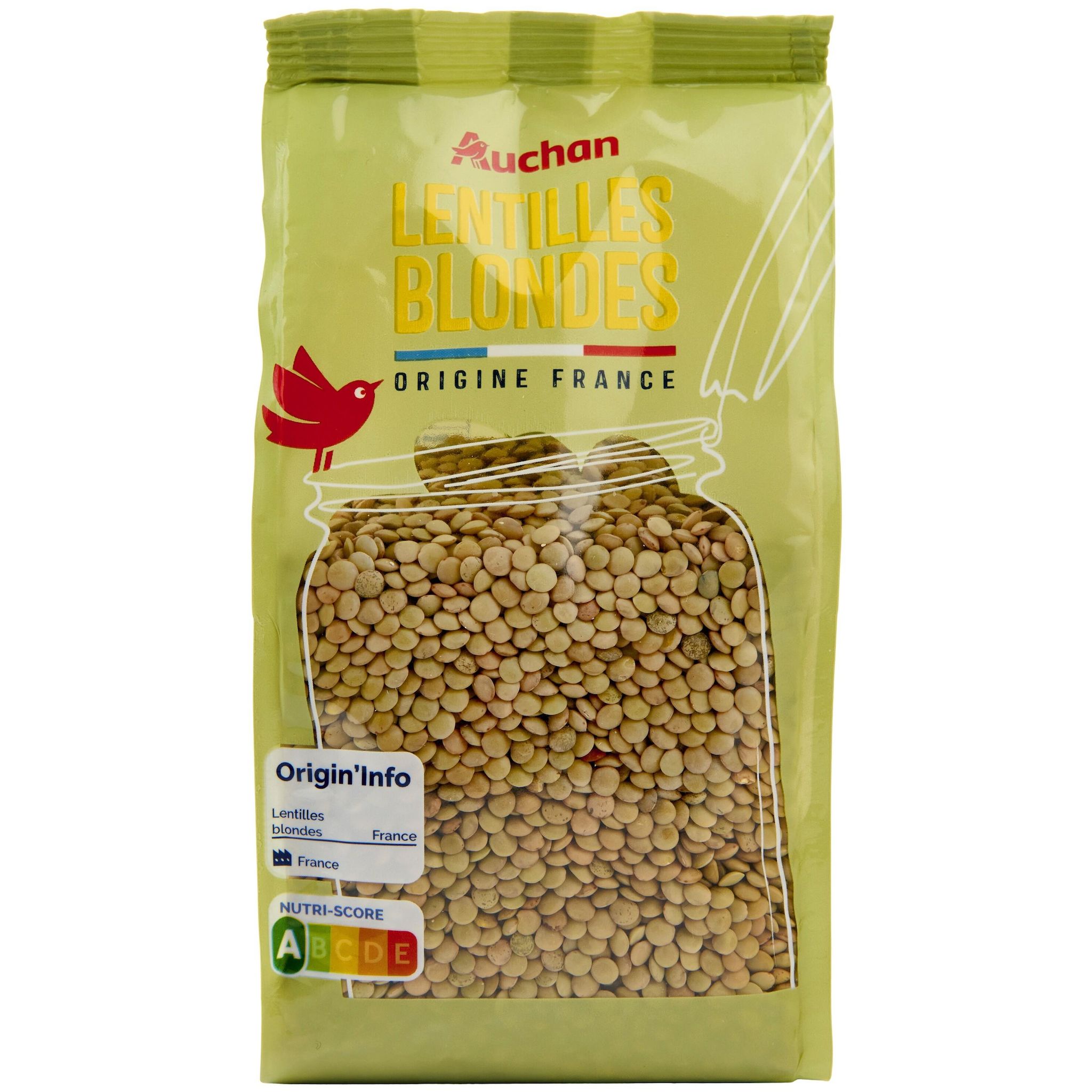Ingrédients : Lentilles blondes. Traces éventuelles de fruits à coque, arachides, graines de sésame et céréales contenant du gluten.