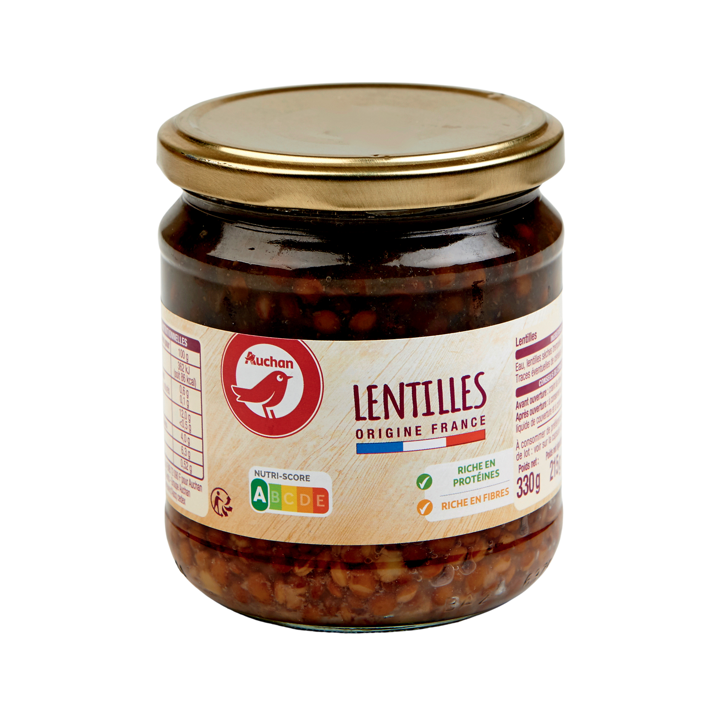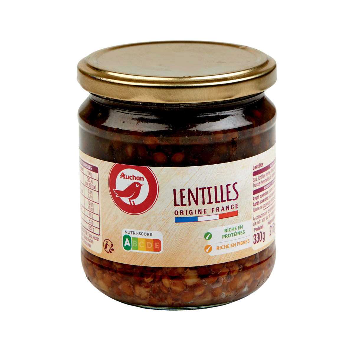 Ingrédients : Eau, lentilles sèches trempées, sel Traces éventuelles de céréales contenant du gluten