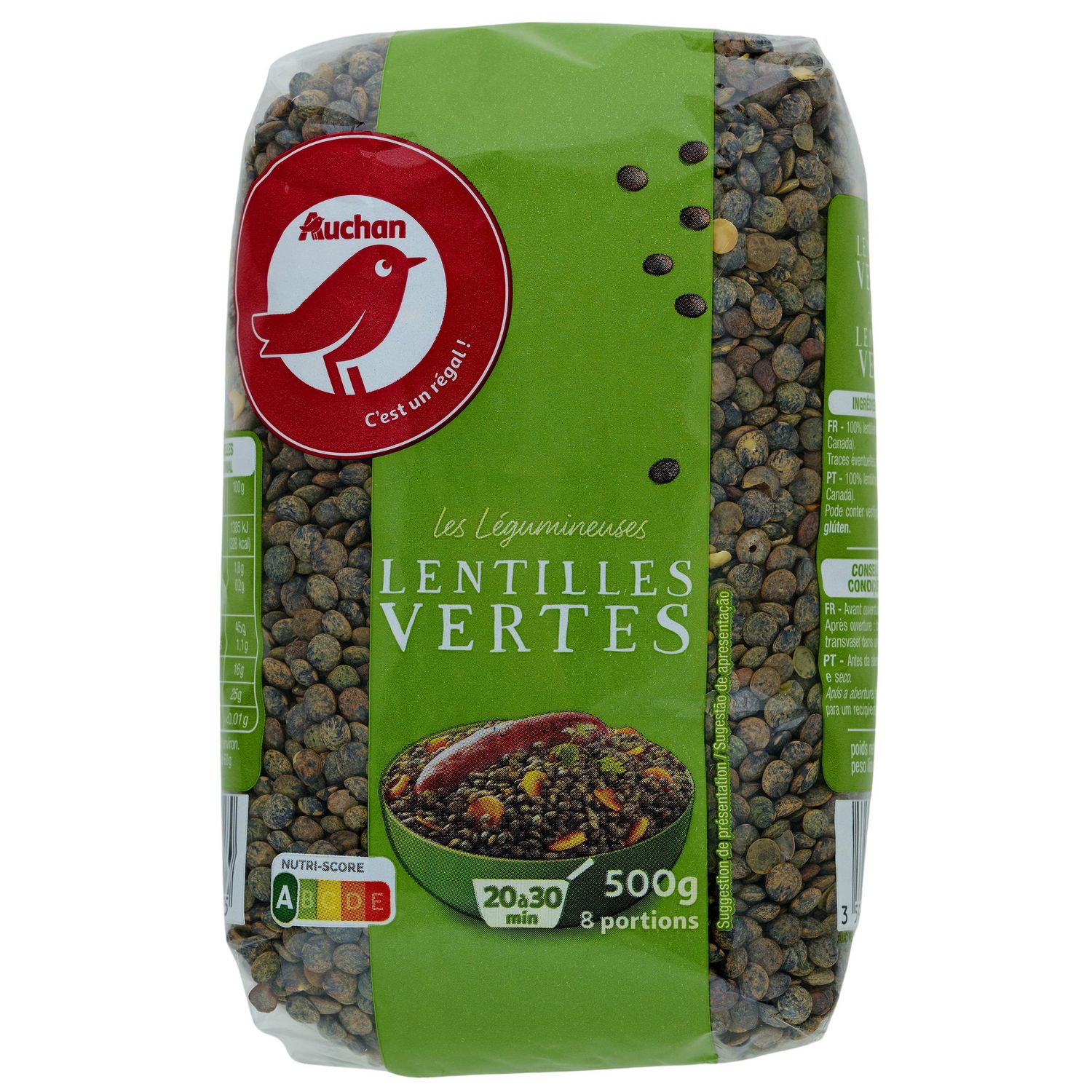Ingrédients : 100% lentilles vertes (origine : France ou Canada) Traces éventuelles de céréales contenant du gluten