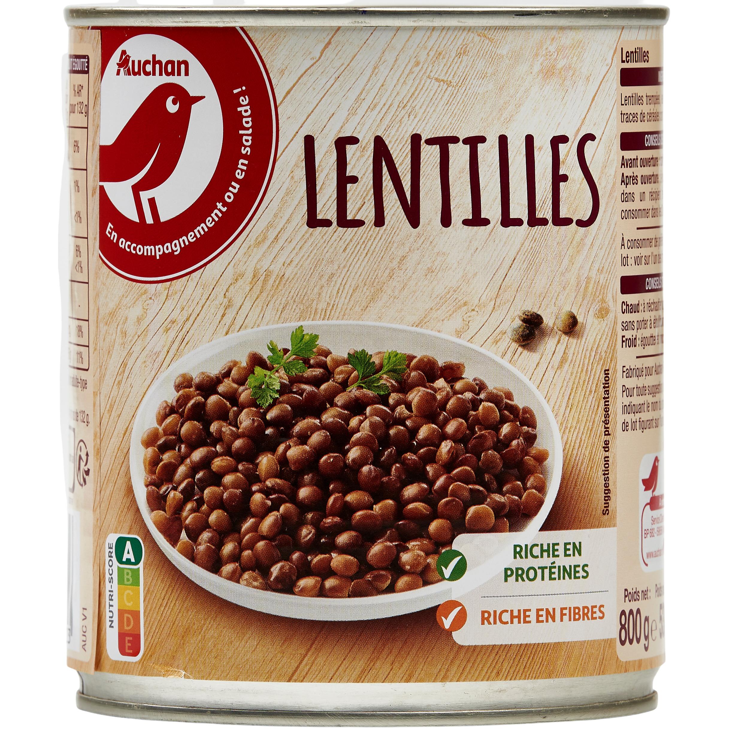 Ingrédients : Eau, lentilles trempées, sel, affermissant : chlorure de calcium. Traces éventuelles de céréales contenant du gluten.