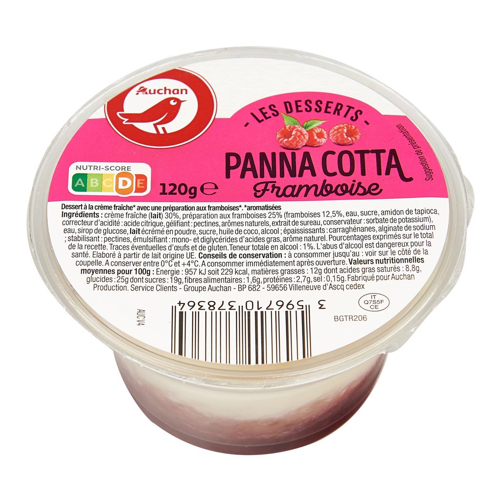 Fabriqué pour Auchan Production 200, Rue de la Recherche 59656 Villeneuve d'Ascq Cedex France