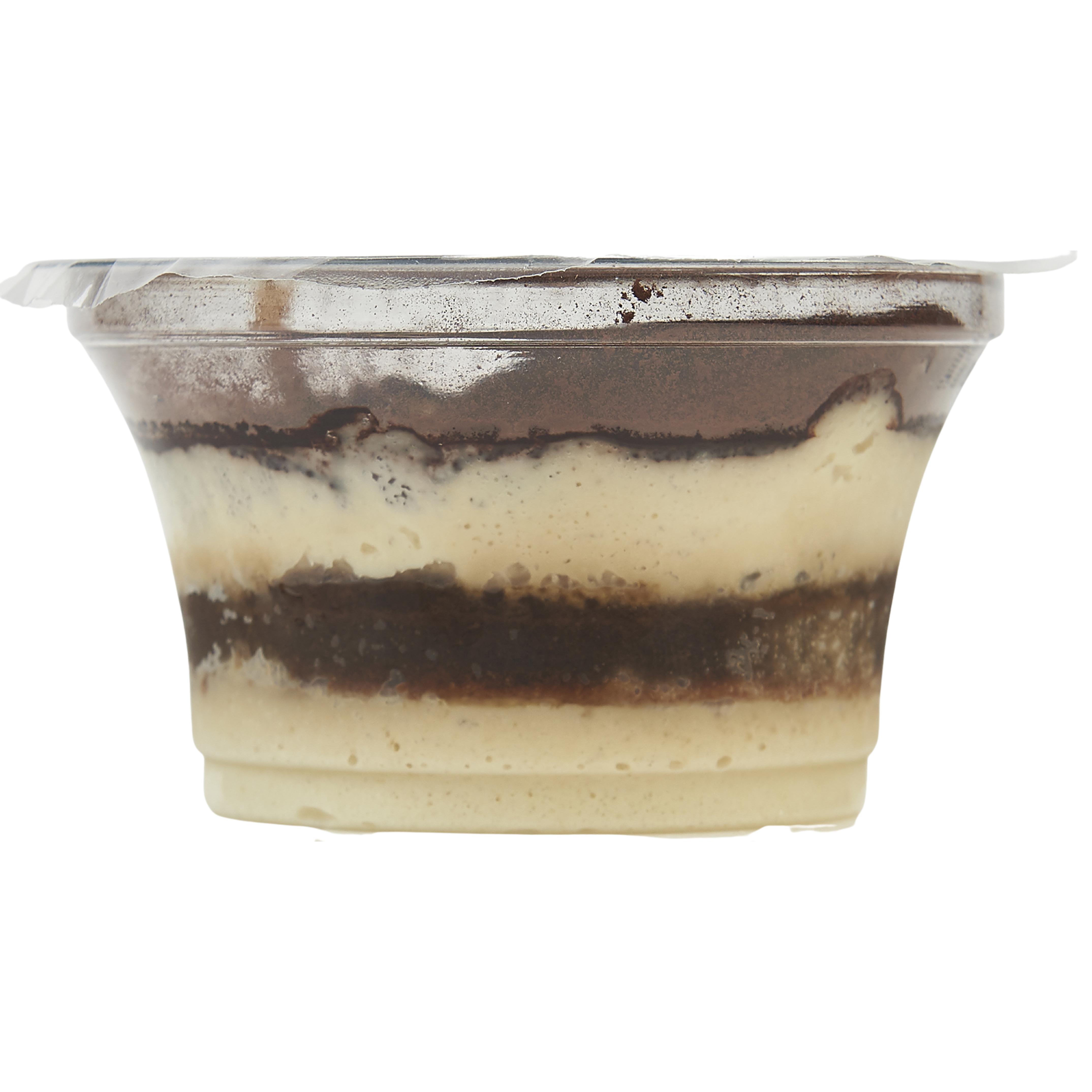 Ingrédients : Préparation au mascarpone 68,9%: eau, sirop de glucose, LAIT écrémé en poudre, mascarpone 10% (crème (LAIT), LAIT, correcteur d’acidité : acide lactique), huile de coco, sucre, jaune d'ŒUFS, vin Marsala 1,4%, stabilisant : sorbitols alcool, fibre d’agrumes,épaississant : carraghénanes, émulsifiant : mono- et diglycérides d’acidesgras arôme naturels (LAIT, OEUF) . Sauce au café 22,2% : eau, sirop de glucose, sucre, alcool, cafésoluble 0,7%, arôme naturel de café, extrait de café. Génoise 7,8% : farine de BLÉ, ŒUFS, sucre, émulsifiant : mono-et diglycérides d’acides gras, poudres à lever : diphosphates, carbonates de sodium. Cacao en poudre 1,1%. Pourcentages exprimés sur le total de la recette. Traces éventuelles de soja et de moutarde. Teneur totale en alcool 1,7%. L’abus d’alcool est dangereux pour la santé. Elaboré à partir de lait origine UE.