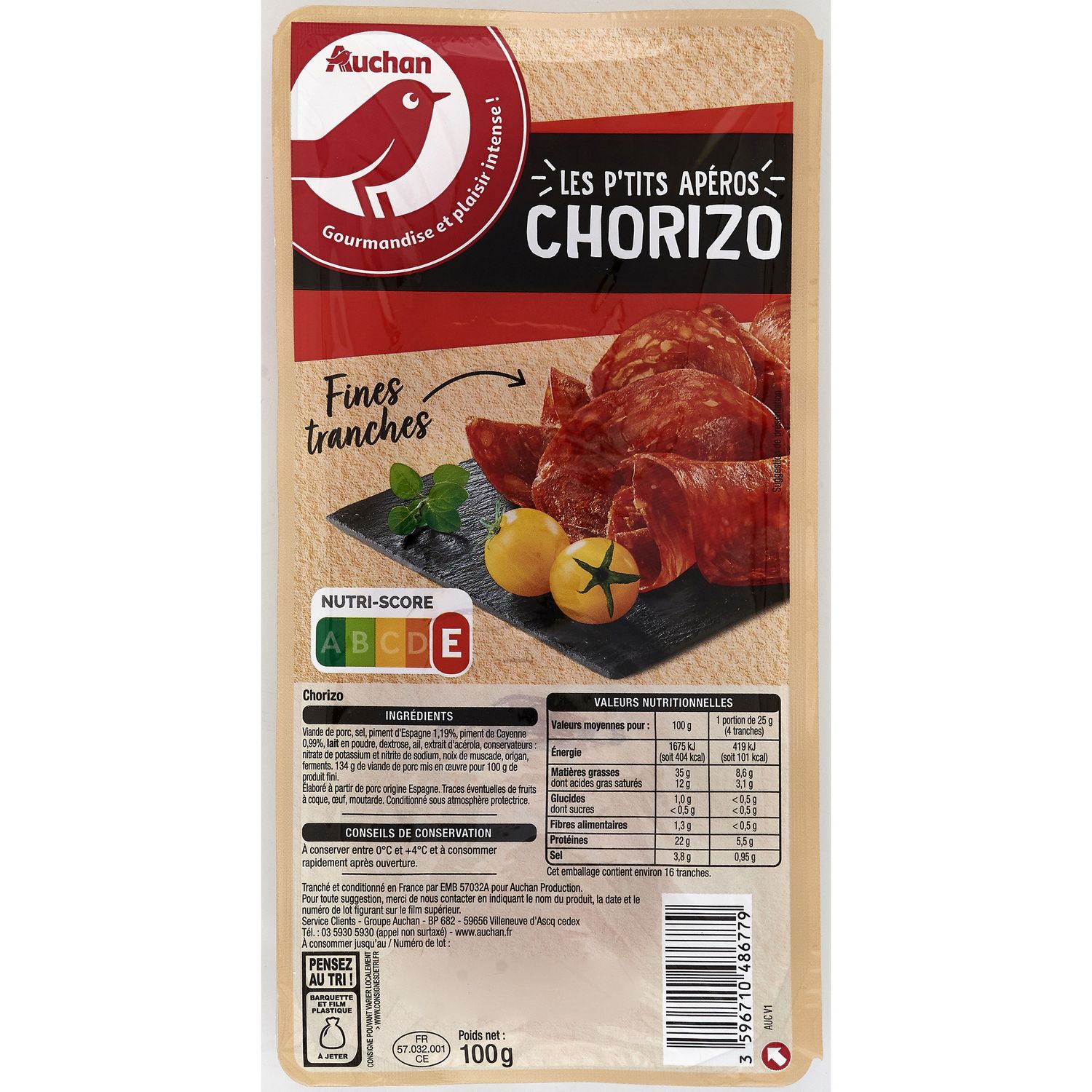 AUCHAN CHORIZO LES FINES TRANCHES 100G