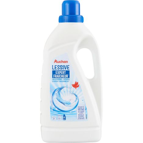 La lessive liquide Auchan expert fraîcheur vous garantit un linge frais et une propreté éclatante. Efficace contre les taches les plus tenaces. Son emballage comporte au moins 50% de matières recyclées.