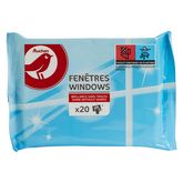 Utiliser pour nettoyer les vitres. Fermer l'étiquette après usage pour éviter que les lingettes ne s'assèchent