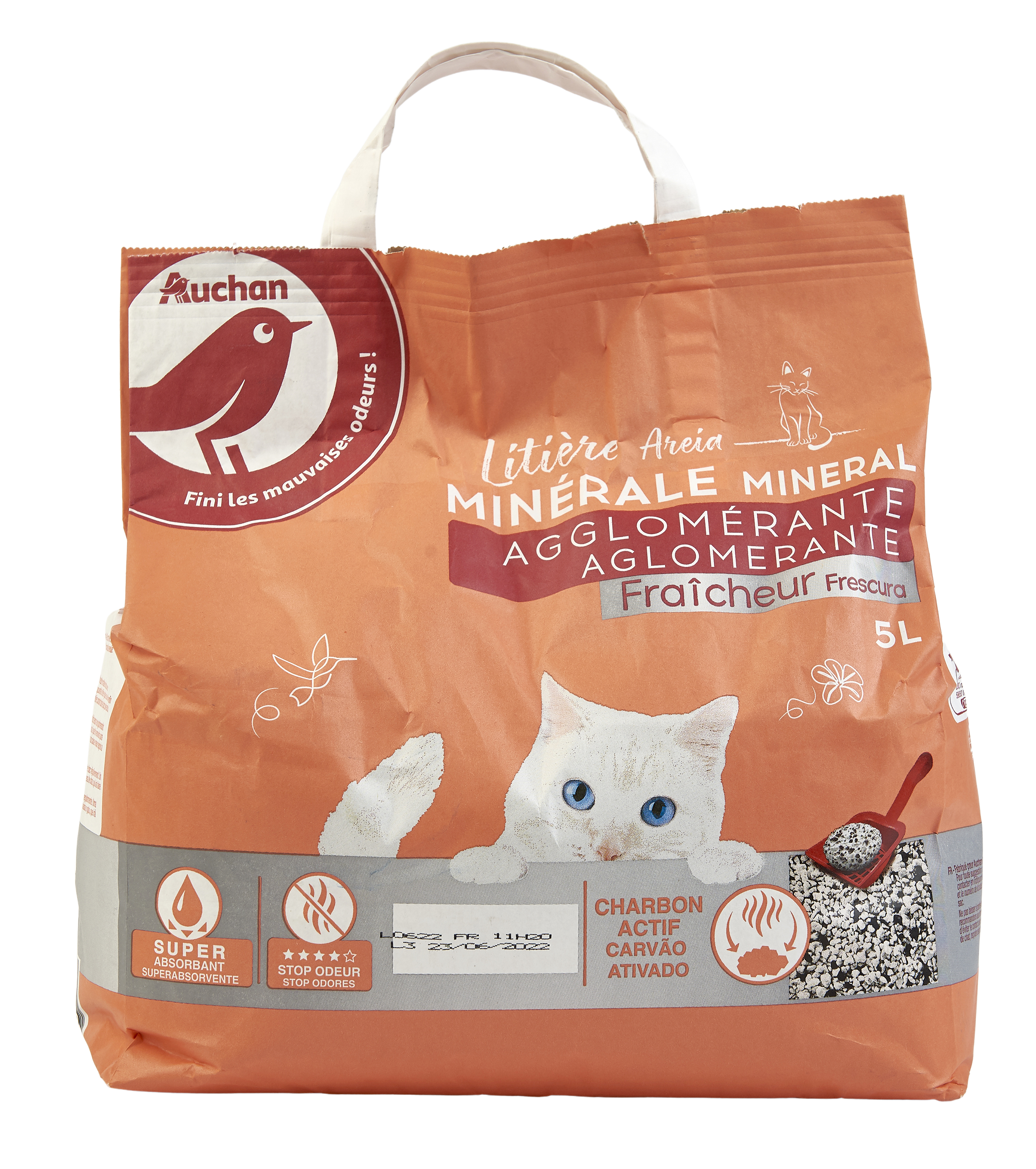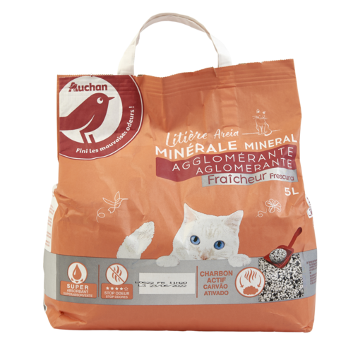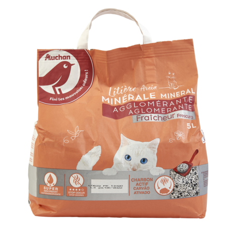 La litière agglomérante fraîcheur Auchan est élaborée à partir d'argile naturelle. Elle contient également du charbon actif qui permet de capter et limiter les mauvaises odeurs liées aux petits besoins de votre chat. Son format compact et sa capacité à former des agglomérats pour le nettoyage des matières souillées faciliteront votre quotidien.