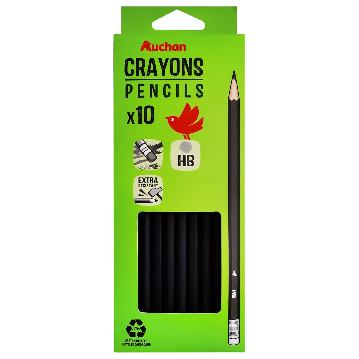 Utilisé dans le dessin d’art, les cours d’arts plastiques ou la réalisation de croquis en cours, au bureau ou à la maison, ce pack économique de 10 crayons graphite HB (Hard Black) offre une mine normale à dureté moyenne. Indispensable dans l’apprentissage du dessin à main levée ou