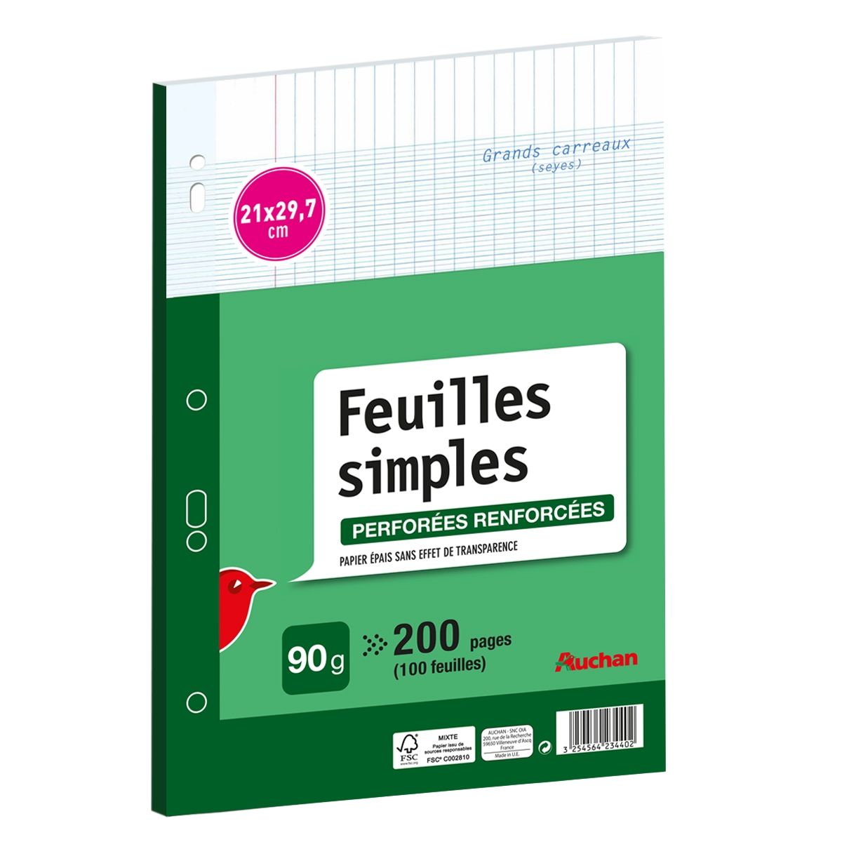 Lot de 100 feuilles simples 21x29,7cm grands carreaux Seyes perforées