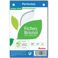 Lot de 100 fiches bristol 10x15cm petits carreaux 5x5 perforées