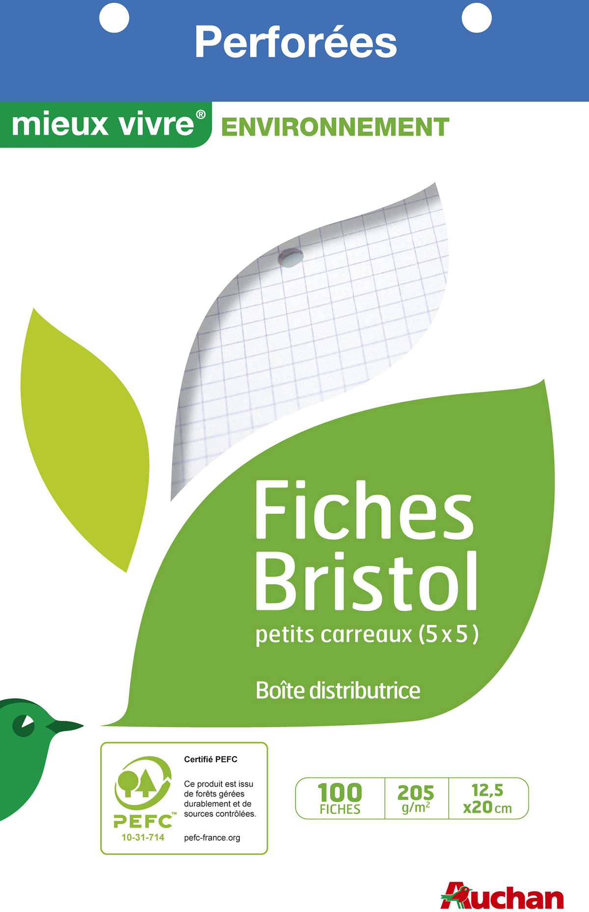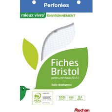 En savoir +Fiches perforées conservées dans un étui de protection pour éviter que les fiches ne s'abiment. Petits carreaux. 205Gr. Papier certifié P.E.F.C.