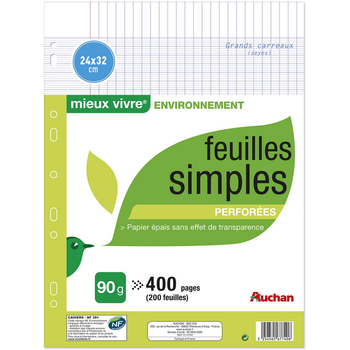 Lot de 200 feuilles simples 24x32cm grands carreaux Seyes perforées