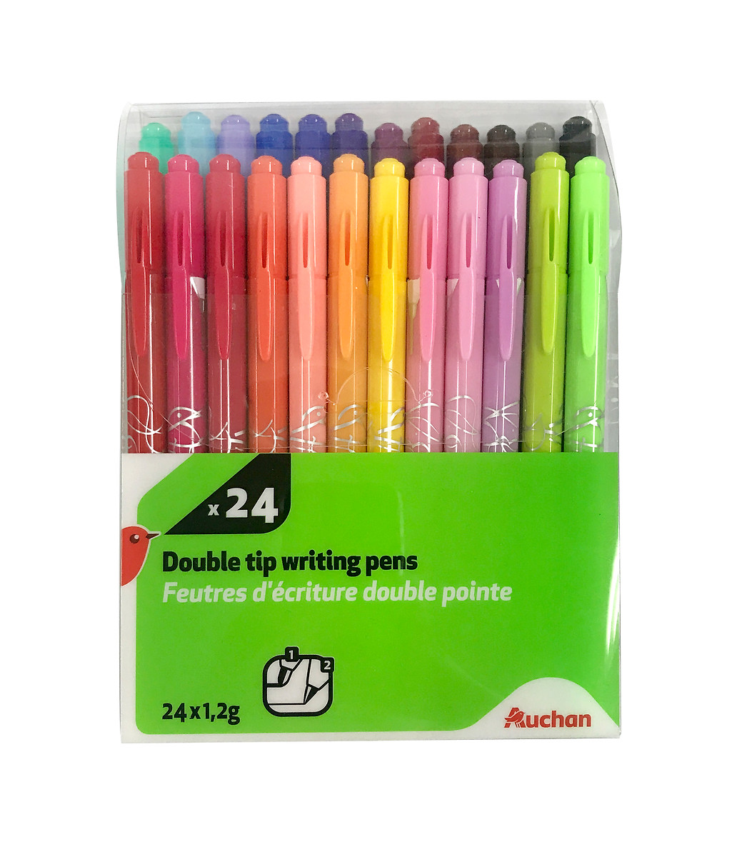 Ces 24 feutres d'écriture sont dotés d'une double pointe fine et épaisse pour écrire ou colorier selon vos envies !