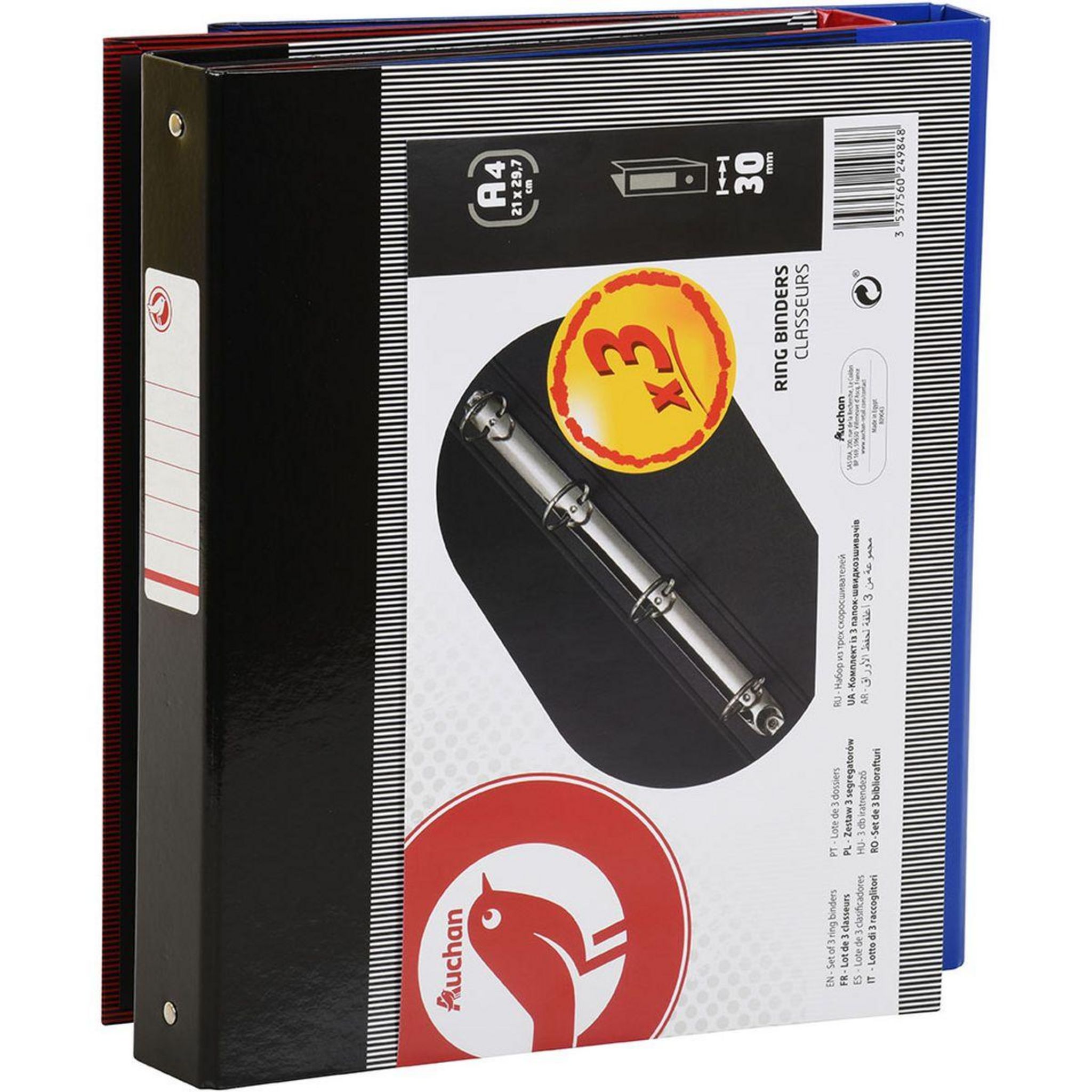 Lot de 3 classeurs A4 rigide dos 30mm papier pelliculé