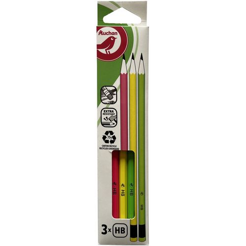Indispensable dans l’apprentissage du dessin à main levée ou la prise de notes tout au long de l‘année scolaire, chaque crayon avec gomme intégrée permet d’obtenir des traits fins-moyens. Leurs mines extra résistantes et durables dans le temps sont faciles à tailler et facilement effaçables à la gomme blanche. Doté d’un corps hexagonal en plastique vernis pour une prise en main optimal et déclinés dans des couleurs pep’s, ces crayons à papier HB, de haute qualité trouveront facilement leur place dans la trousse des écoliers et des étudiants ou dans un pot à crayons pour l’avoir toujours à portée de main. Longueur : 19 cm. Pochette de 3 crayons graphiques HB : rose x1 – jaune x1 – vert x1.