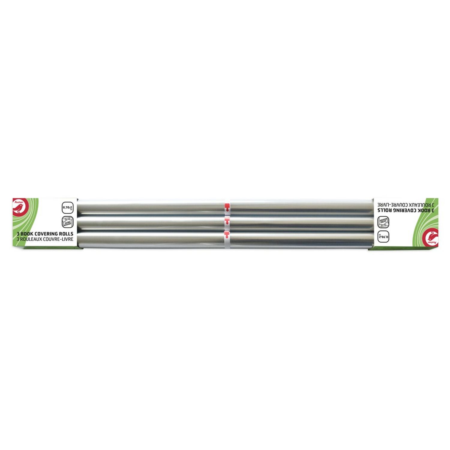 Protégez les couvertures de vos livres et cahiers avec ce film transparent souple. Ce lot est composé de 3 rouleaux de dimensions 0,7 x 2 m.