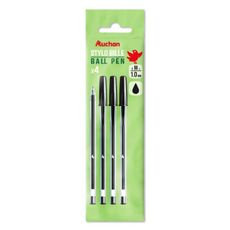 Lot de 4 stylos bille noirs pointe moyenne 1 mm en bouteille recyclée