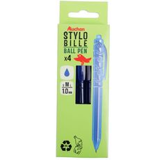 Lot de 4 stylos bille rétractables pointe 1mm bleu