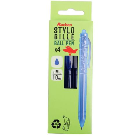 Réalisé à partir de 89% de bouteilles en plastique recyclées, ce pack de 4 stylos bille rétractables à encre bleue est un incontournable dans la liste des fournitures scolaires, son usage au quotidien permet une écriture nette et précise en classe, au bureau ou à la maison. Fonctionnel et facile à prendre en main, ces stylos offrent un design transparent avec un motif graphique ainsi qu’un grand confort d’écriture et disposent d’une pointe conique moyenne de 1.0 mm, d’un bouton poussoir rétractable pour protéger la mine, d’un corps à la couleur de l’encre pour un repérage facile et d’un clip pour s’accrocher sur tous supports et l’emporter partout avec soi. Un grip permet une meilleure préhension à chaque utilisation. Très utile tout au long de l’année pour tous les travaux d’écriture, ces stylos à bille rétractables se glissent facilement dans une trousse, un tiroir de bureau ou dans un pot à crayons pour l’avoir toujours à portée de main. Couleur de l’encre : bleu.