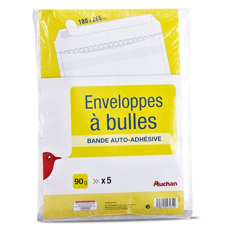 Lot de 5 pochettes à bulles d'air auto adhésives 180x270 mm - Blanc
