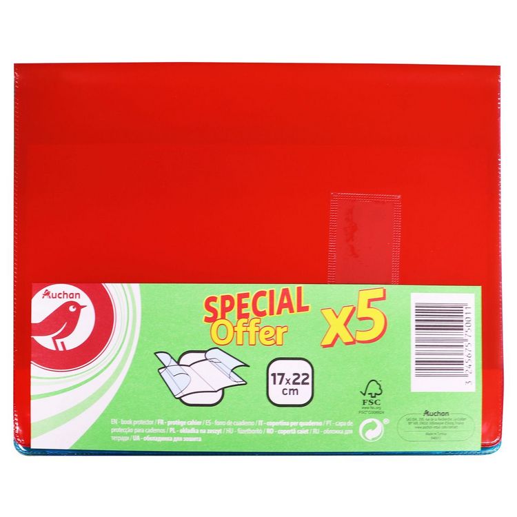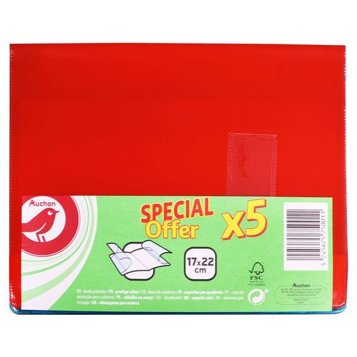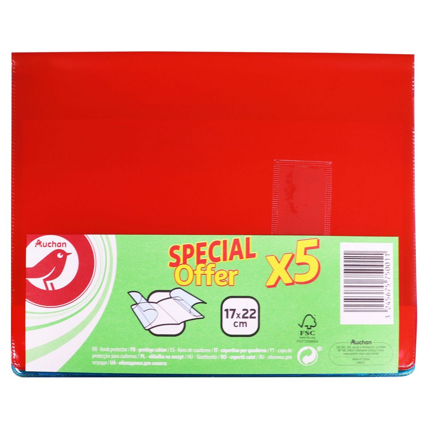 5 protège cahier coloris assortis translucide avec rabat. dimension 17x22cm