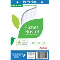 Lot de 50 fiches bristol 12,5x20cm petits carreaux 5x5 perforées