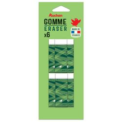 En savoir +Outil indispensable dans la trousse des écoliers grâce à son format idéal, ce lot de 6 gommes blanches de forme rectangulaire permet d’effacer les erreurs ou les ratures réalisées au crayon à papier ou au critérium sur toutes les surfaces en papier (calque, millimétré, carton fin…) sans altérer le support. Efficace, précis et facile à prendre en main grâce à son fourreau en carton imprimé qui protège des salissures, cet ensemble de gommes de qualité offre d’excellents résultats d’effaçage et produit peu de résidus pour un gommage propre et sans trace. Très utile tout au long de l’année, il fait partie des essentiels à avoir toujours avec soi et avec son imprimé graphique bleu, il apporte une touche de couleur à l’univers de travail des écoliers. En PVC. Le packaging évolue, le produit reste le même !