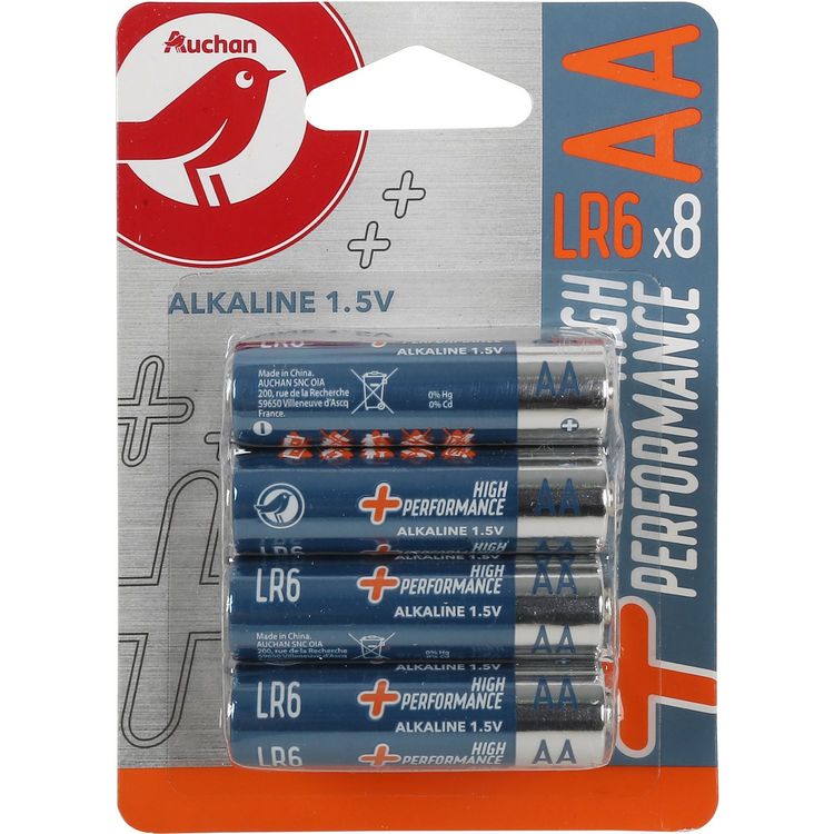 Lot de 8 piles alcaline high performance AA LR06