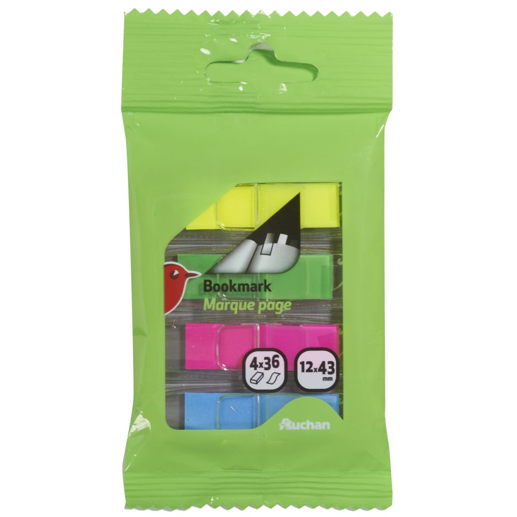 Marque-pages colorés malins. En film coloré, ils deviennent de vrais repères. Tout en transparence, ils vous permettent même surligner quelque chose d'important. Idéal sur les livres empruntés par exemple. Se colle et se recolle à volonté, sans laisser de trace. Colle à base aqueuse, sans solvants. 12x43mm