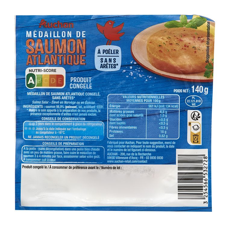 Médaillon de saumon d'Atlantique sans arêtes