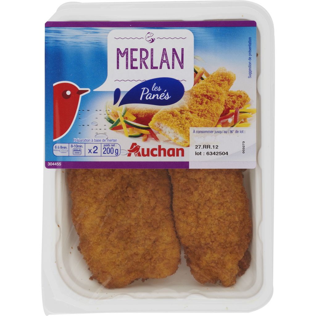 Filets de merlan (poisson) 51% ; chapelure 20% (farine de blé, levure, sel, épices : curcuma, paprika) ; eau ; huiles végétales (tournesol, colza) ; poisson ; farine de blé, amidon modifié de pomme de terre ; sel ; arôme naturel de citron.Traces éventuelles de lait, mollusques, œuf, céleri, soja.Malgré tout le soin apporté à la préparation de nos produits, la présence d'arêtes n'est jamais exclue