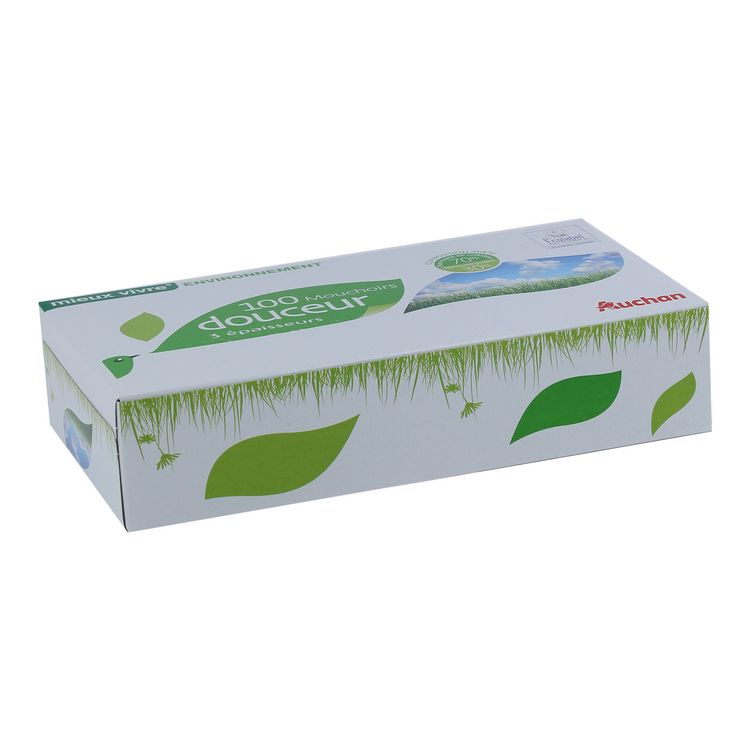 AUCHAN MIEUX VIVRE ENVIRONNEMENT MOUCHOIRS DOUCEUR BLANCS 3 EPAISSEURS X100