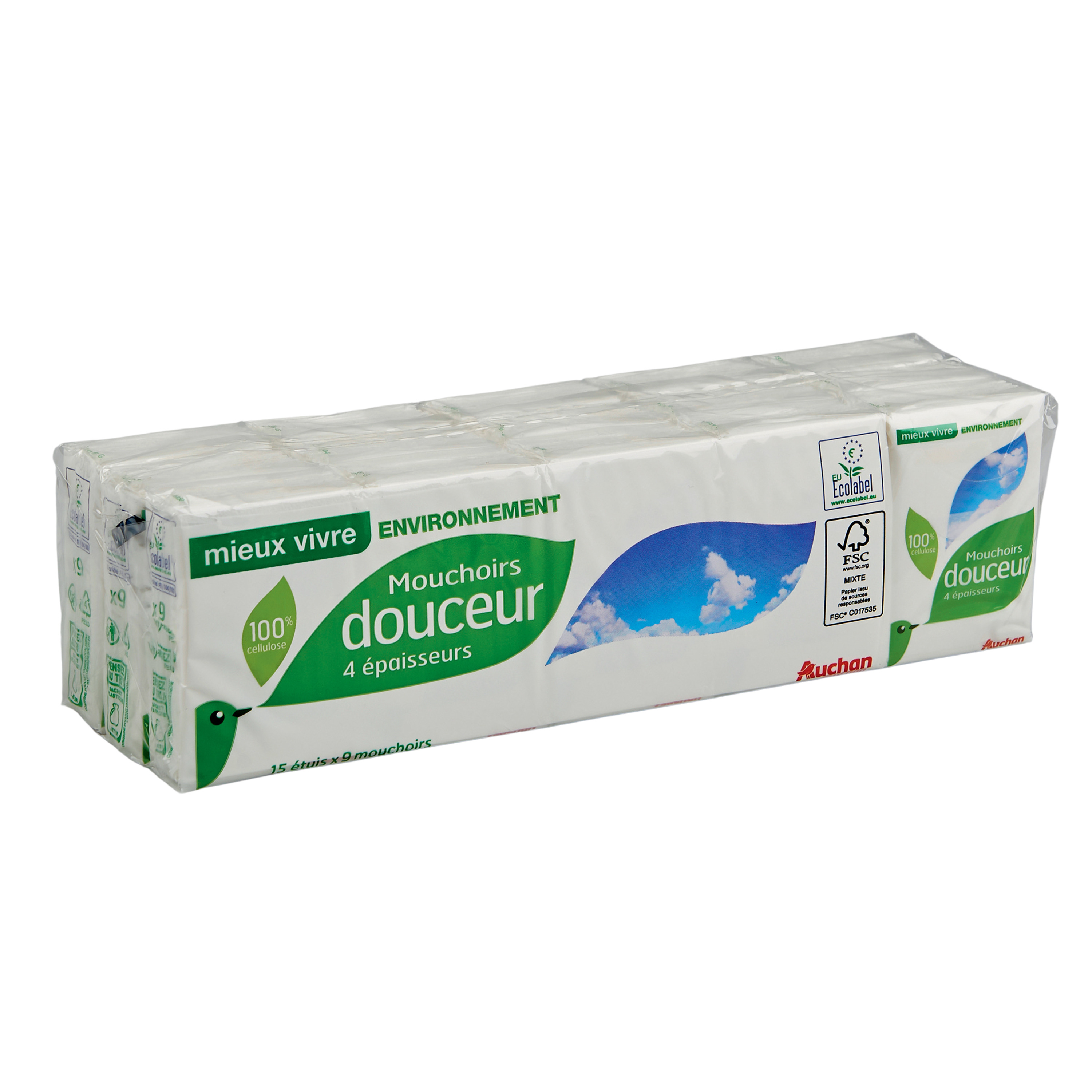 AUCHAN MIEUX VIVRE ENVIRONNEMENT MOUCHOIR ETUI