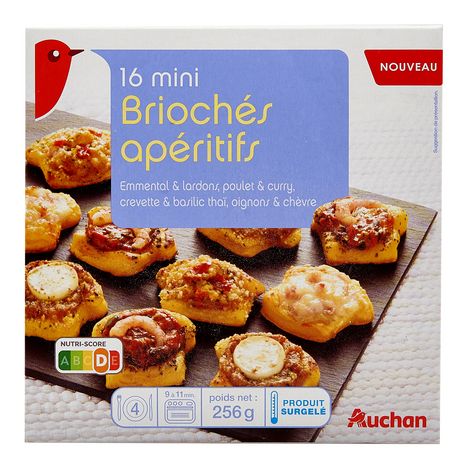 Mini briochés Emmental lardons-Poulet curry-Crevette basilic-Oignon chèvre