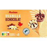 Découvrez le plaisir irrésistible de nos mini cônes, une délicieuse combinaison de glace vanille onctueuse et d'une glace chocolat savoureuse. Avec 8 mini cônes par paquet, les douceurs sont parfaites pour partager ou pour se faire plaisir à tout moment de la journée.