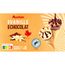 Mini cône de glace à la vanille 67,4%, gaufrette 16,3%, chemisage et décor au cacao maigre 14% et morceaux de noisettes caramélisés 2,3%.Mini cône de glace au chocolat 67,4%, gaufrette 16,3%, chemisage et décor au cacao maigre 14% et morceaux de noisettes caramélisés 2,3%.