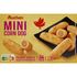 Mini saucisse (48.1%) enrobée d'une pâte à beignet (51,9%) à base de farine de blé et de maïs, surgelée, à cuire au four.