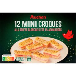 12 mini croque-monsieur garnis d’une préparation à base de béchamel à la truffe blanche d'été Tuber aestivum (1%), aromatisée, de jambon cuit standard et d’emmental, surgelés