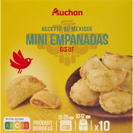 au airfryer:Sans décongélation préalable.Déposer les mini empanadas dans le panier du airfryer en les espaçant et laisser cuire 10 à 12 minutes à 200 °C.Les temps de cuisson indiqués sont des valeurs indicatives et peuvent varier en fonction des appareils de cuisson utilisés.à consommer cuit à cœur.au four:Sans décongélation préalable.Préchauffer le four à 180°C (thermostat 6). Déposer les mini empanadas sur une plaque recouverte d’un papier cuisson. Enfourner à mi-hauteur et cuire 15 à 20 minutes.