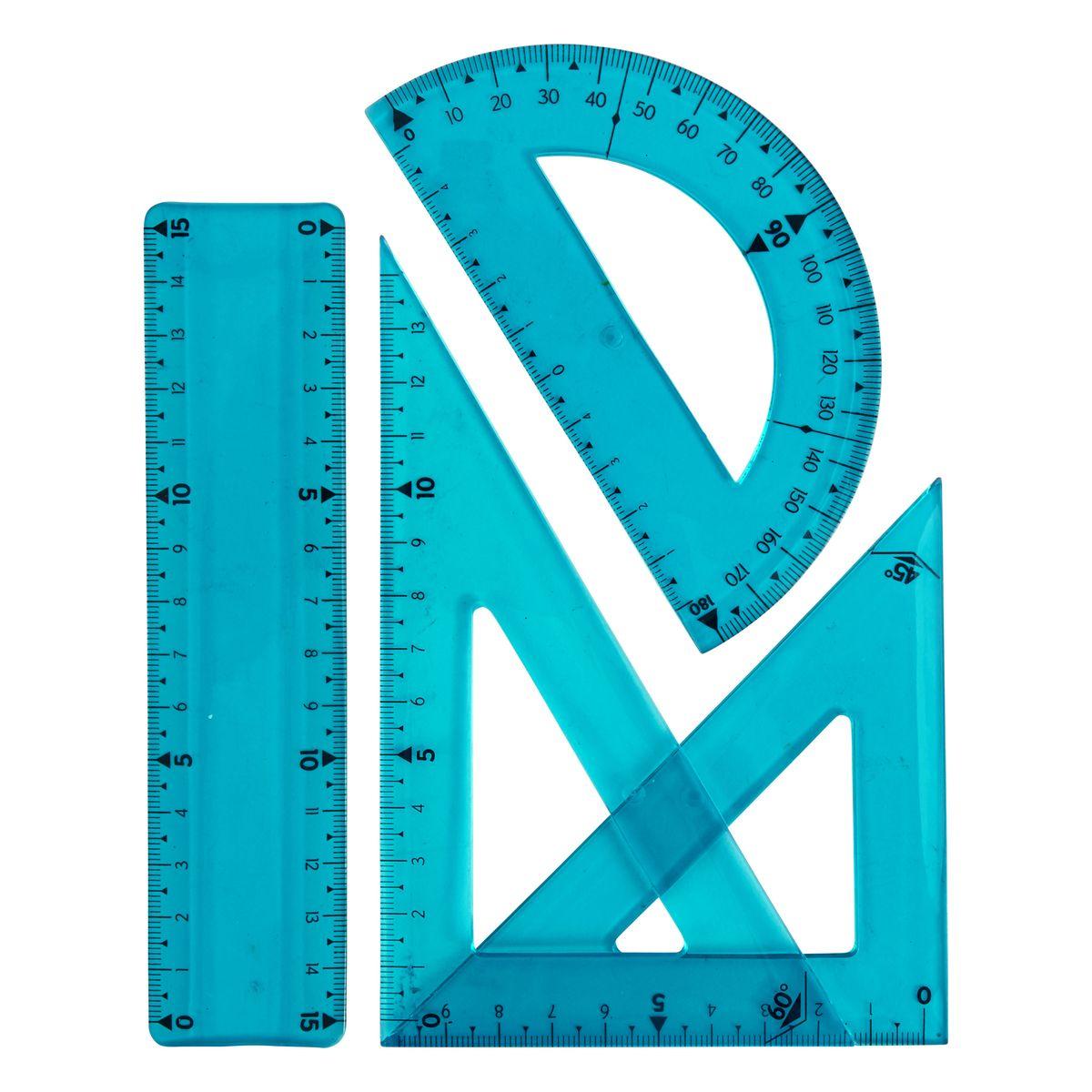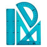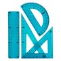 Kit de traçage flexible bleu avec équerres, règle, rapporteur
