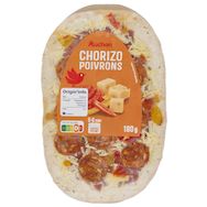 Pizza à pâte fine garnie de sauce tomate, de chorizo*,d'emmental et de poivrons rouges et verts*