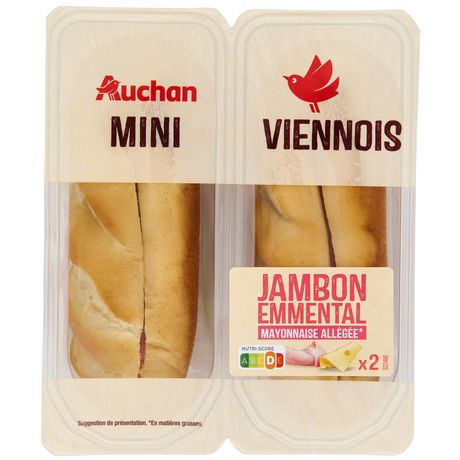 Sandwich au pain spécial viennois garni de jambon cuit standard, d'emmental et de mayonnaise allégée en matières grasses*.